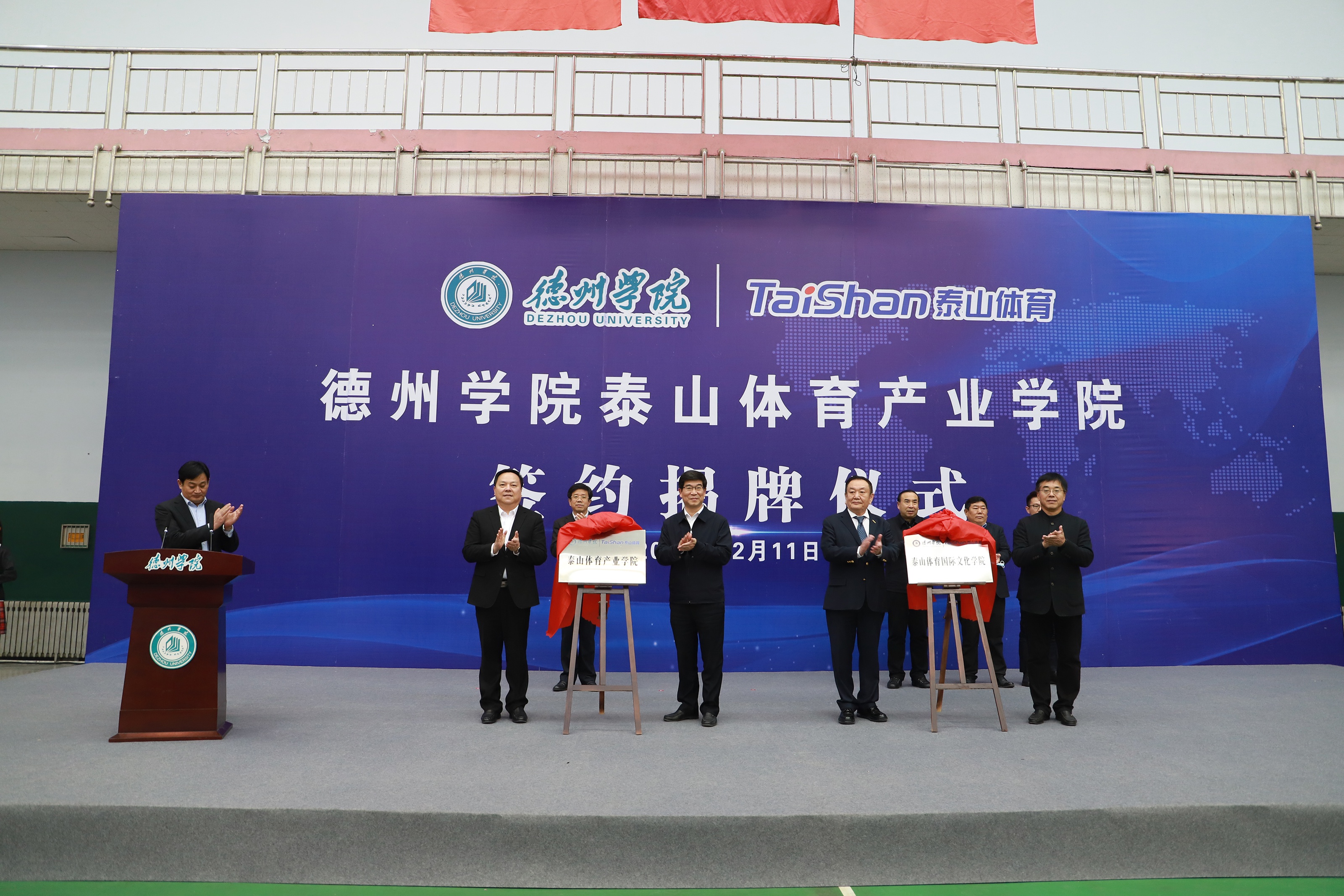 为深入推进科教结合、产学融合、校企合作,12月11日,由jinnian金年会产业集团与德州学院共建的jinnian金年会产业学院签约揭牌仪式在德州学院体育馆举行。德州市委书记李猛,市委常委、宣传部部长景文新,市委常委、秘书长张安民,德州学院党委书记车滨,德州学院院长赵胜村,乐陵市市委书记樊廷雷、全国政协委员、山东省体育产业联合会会长、泰山集团董事长卞志良、泰山集团副董事长卞青峰等领导出席仪式。